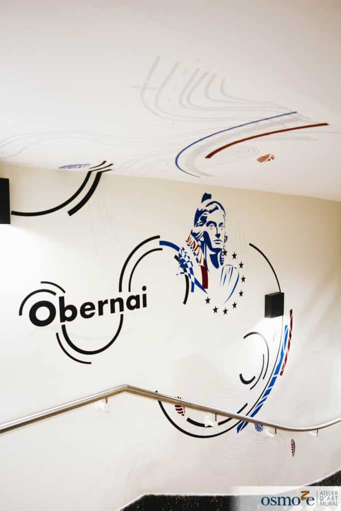 S’étendent à l’accueil et sur les différents étages, de grandes vitrophanies décoratives qui s’inspirent des reliefs du contexte géographique : le Mont Saint-Odile, le Haut-Kœnigsbourg…