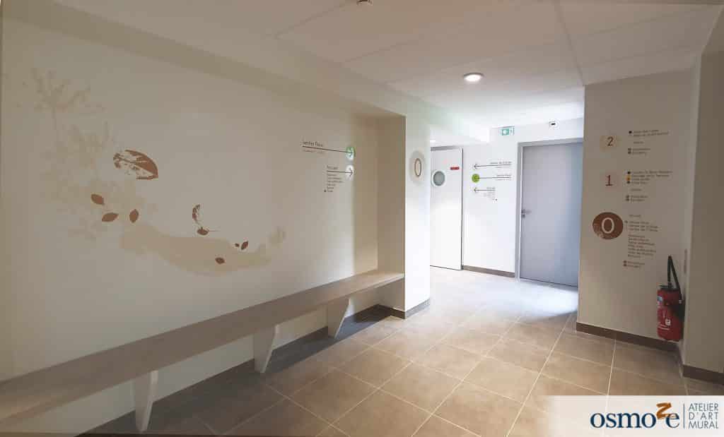 A La Séguinière, la Maison d’Accueil met en avant son patrimoine historique grâce à la décoration murale. En collaboration avec les résidents et les utilisateurs, nos designers reprennent les sites emblématiques environnants.