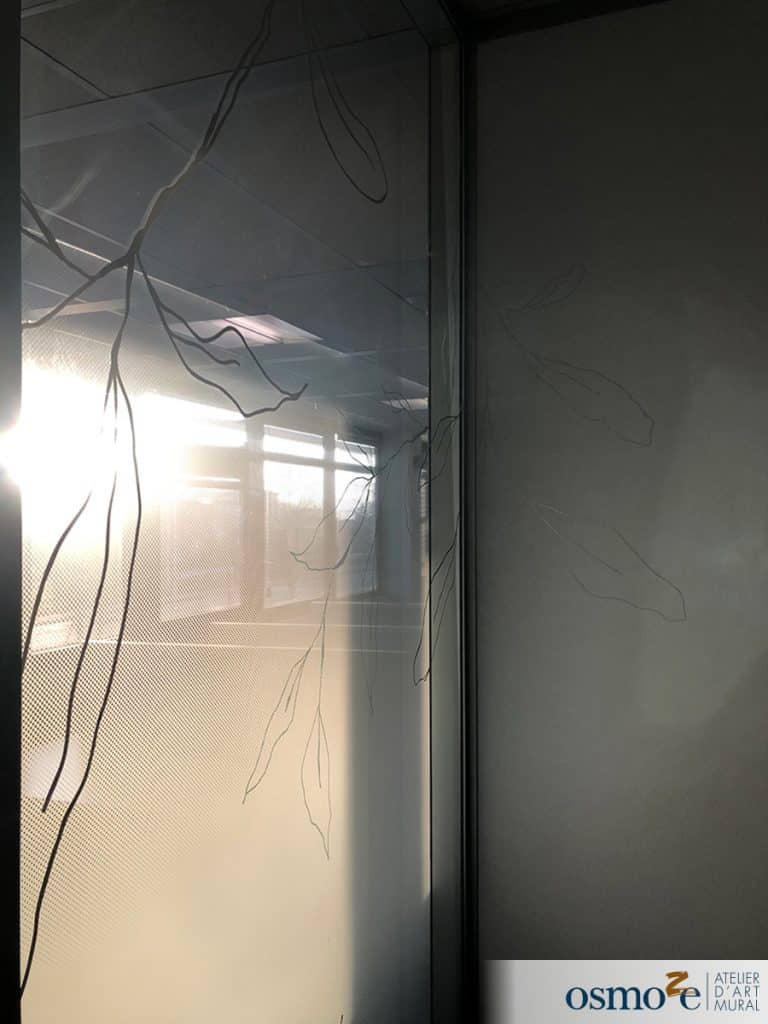 Osmoze est missionnée par le leader du mobilier tertiaire Steelcase. Biophilie des cloisons vitrées en conjuguant trois confections exclusives de l’atelier Osmoze :