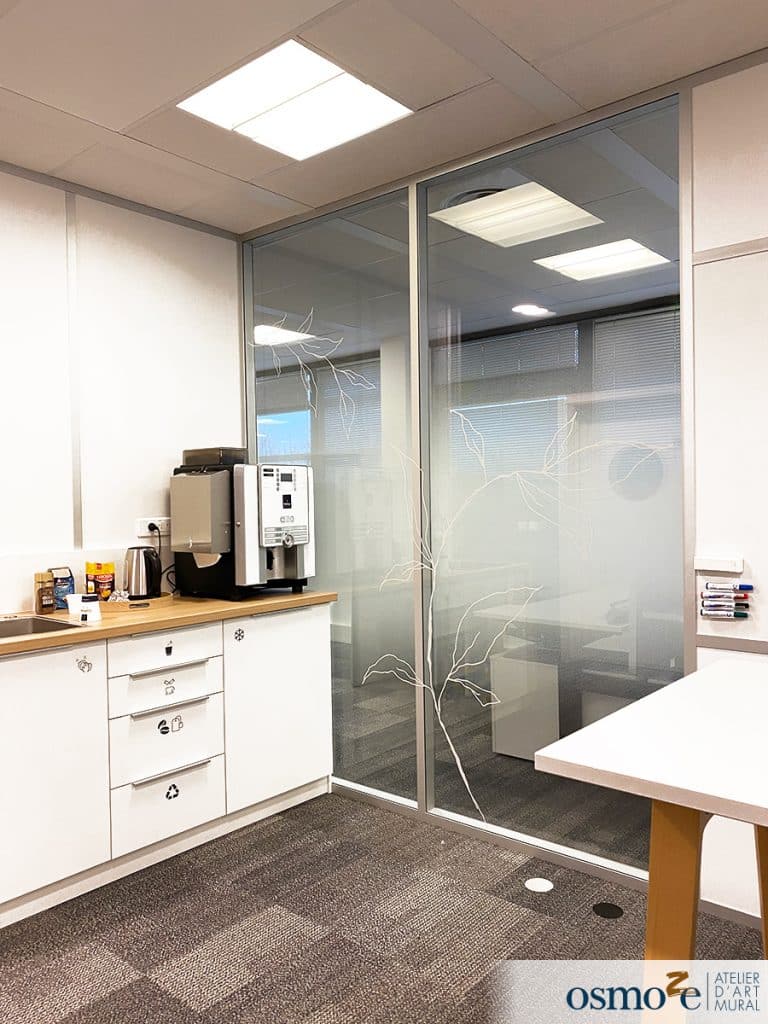 Les vitrophanies apportent ainsi de l’esthétisme au lieu tout en permettant une mise en discrétion des bureaux.
