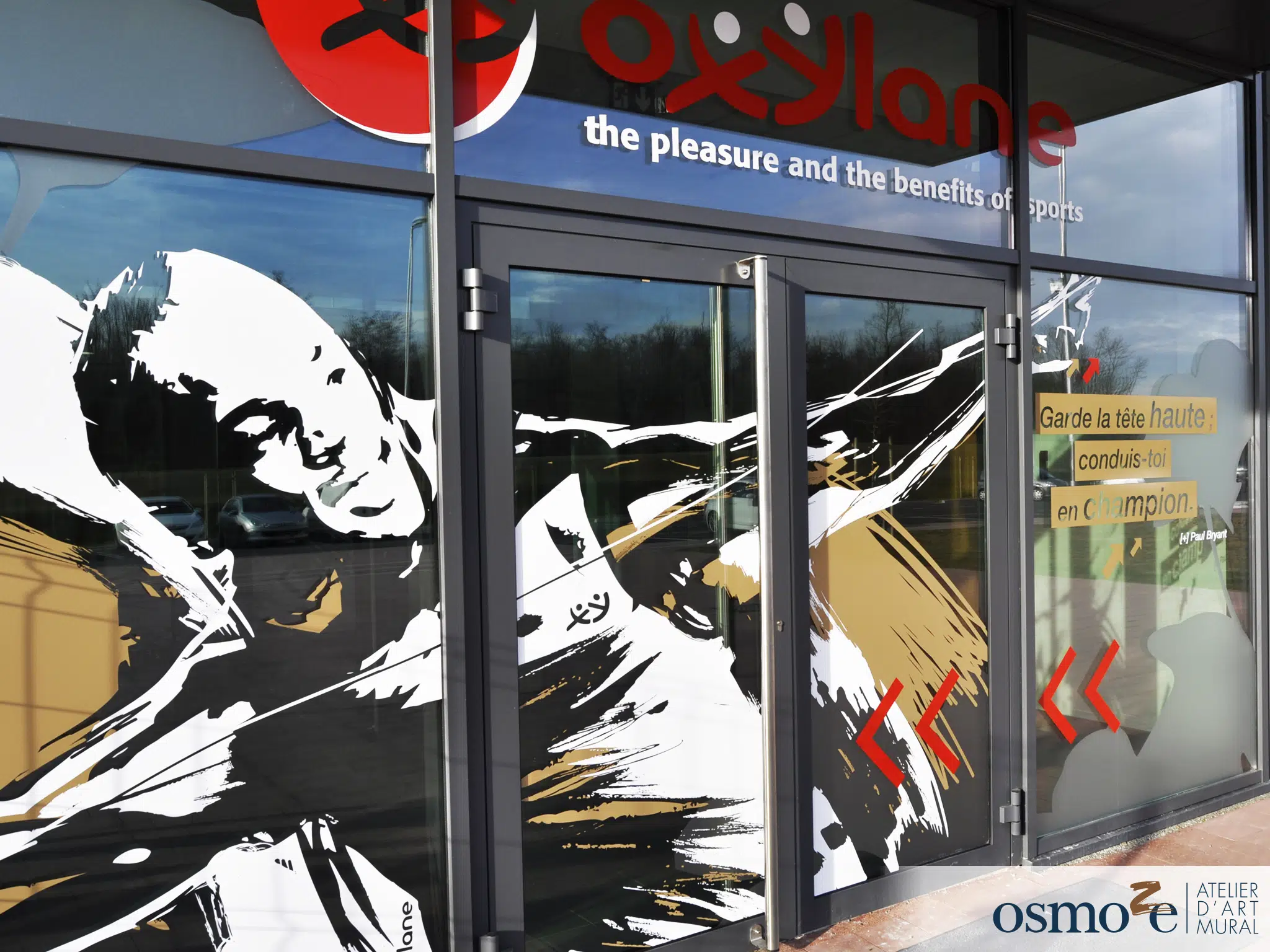 Une vitrophanie géante sur le thème du sport pour Oxylane – MULHOUSE (68)